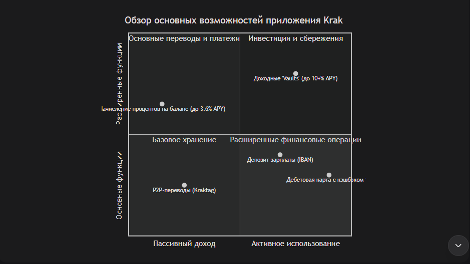 Krak — это амбициозная попытка создать единый финансовый хаб для цифровой эпохи. Он объединяет удобство привычных банковских переводов и карт с преимуществами криптовалютного мира: высокой потенциальной доходностью, низкими комиссиями за переводы и мультиактивностью.